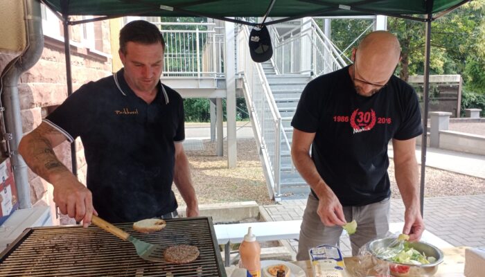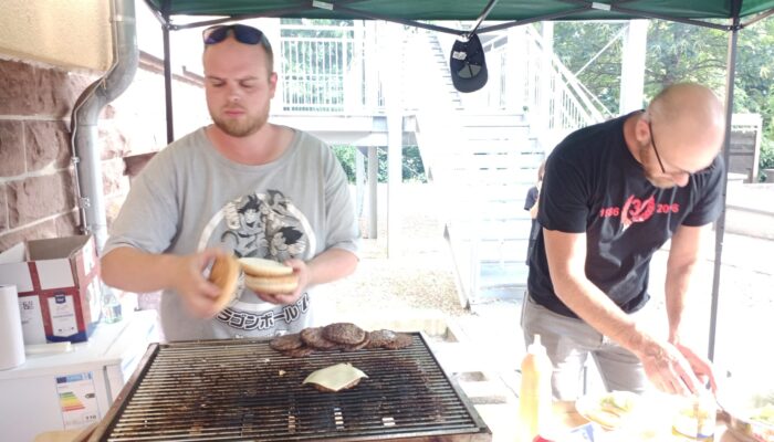 Die Burger kamen dieses Jahr gut an. Fabian und Markus haben alles unter Kontrolle.